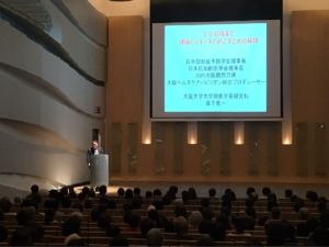 第一部では、2025年日本国際博覧会大阪パビリオン推進委員会総合プロデューサーを務められた、大阪大学大学院医学系研究科臨床遺伝子治療学寄付講座教授の森下竜一先生にご登壇いただき、「100歳まで、健康にイキイキと過ごすための秘訣」と題して、健康で長生きするためにどのようなことに注意すべきかを研究データに基づいて講演していただきました。