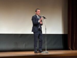 代表取締役社長の原浩之より、開会の挨拶ならびに100年支えてくださったお客様への感謝の言葉、次の100年に向けて、健康寿命延伸が必要な日本社会における当社が担うであろう役割についてお伝えしました。